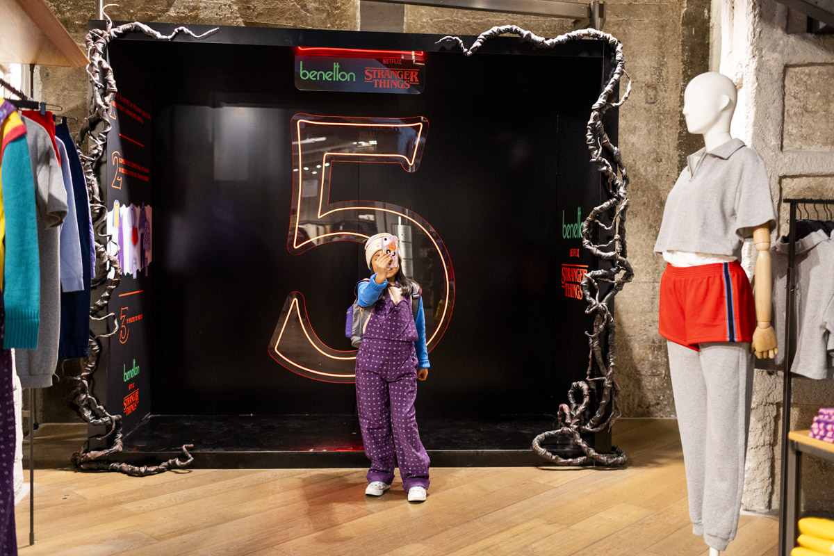 Promoción en la tienda de Madrid de la serie Stranger Things, donde se presentaban prendas inspiradas en la serie y se instaló un photocall para que el público pudiera hacerse fotos